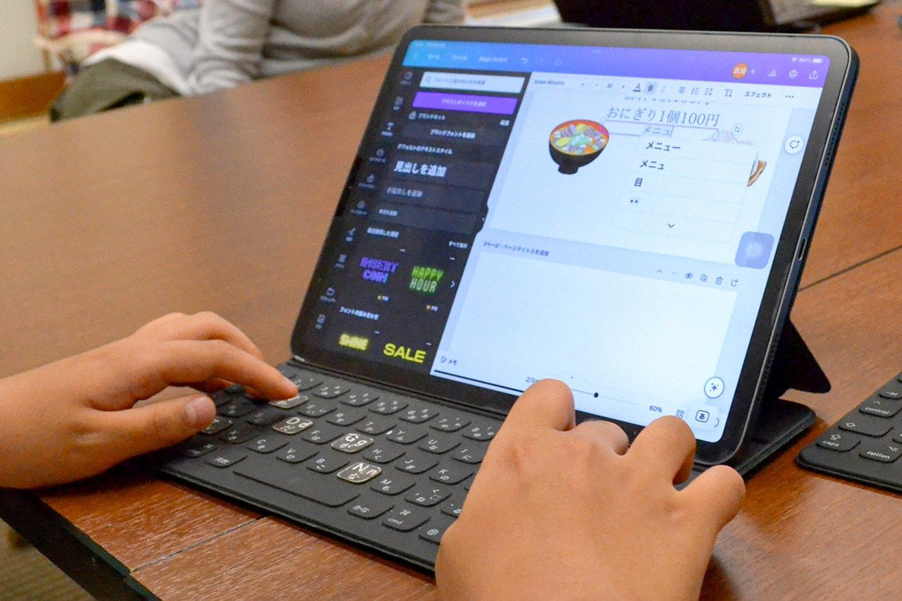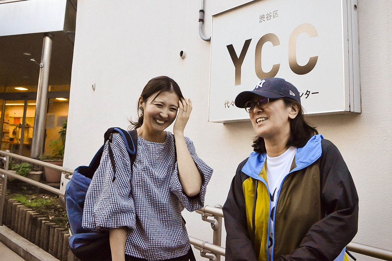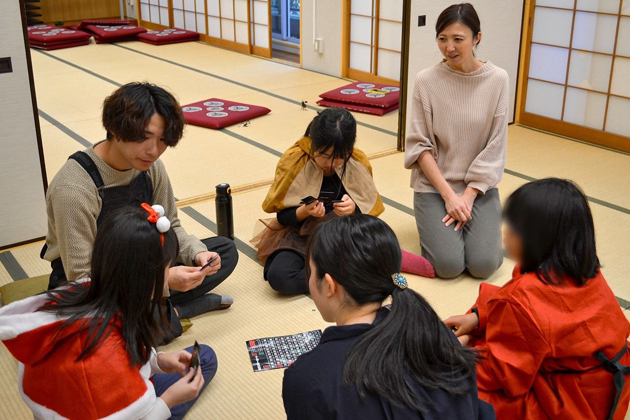 ناكاهارا ماري (يسار)، التي تتواصل عبر الإنترنت من أجل متطوعين للمدرسة، وكوندو ميوا، الذي تقدم الدعم. (© باور نيوز)